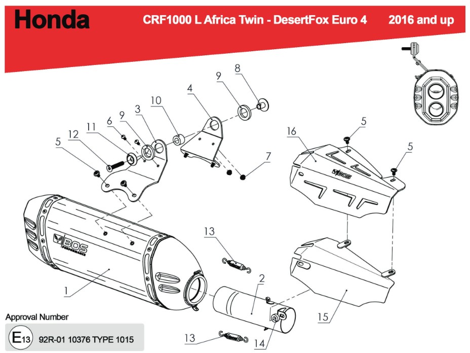 BOS Desert Fox Carbon Steel Einddemper met E-keur Honda CRF 1000 Africa Twin (SD04) 2015 - 2017