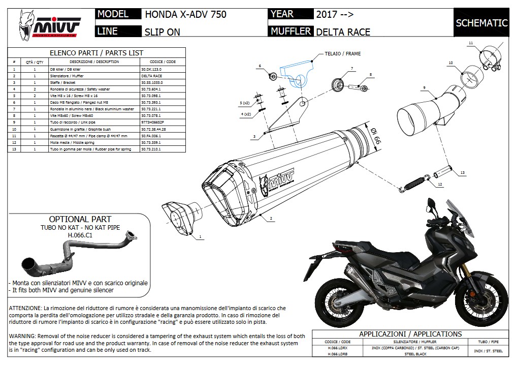 Mivv Delta Race RVS Black Slip-on Eindemper met E-keur Honda X-Adv 750 2017 > 2024