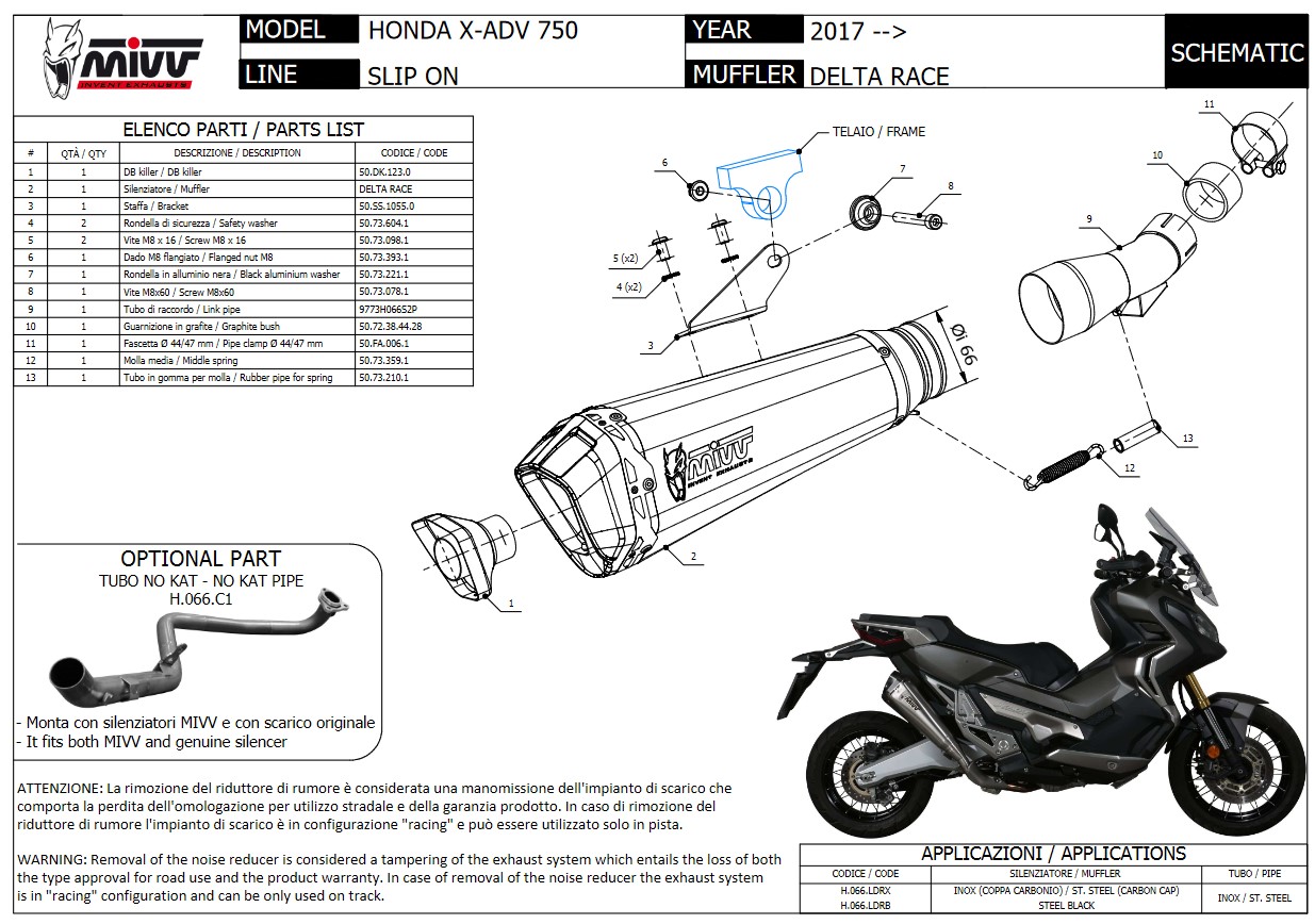 Mivv Delta Race RVS Slip-on Einddemper met E-keur Honda X-ADV 750 2017 > 2024