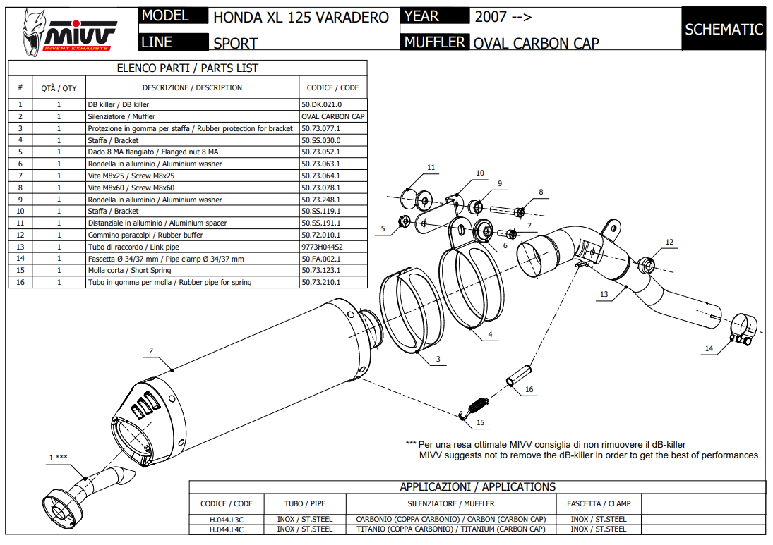 Mivv Oval Carbon met Carbon Cap Slip-on Einddemper met E-keur Honda XL 125 Varadero 2007 > 2011