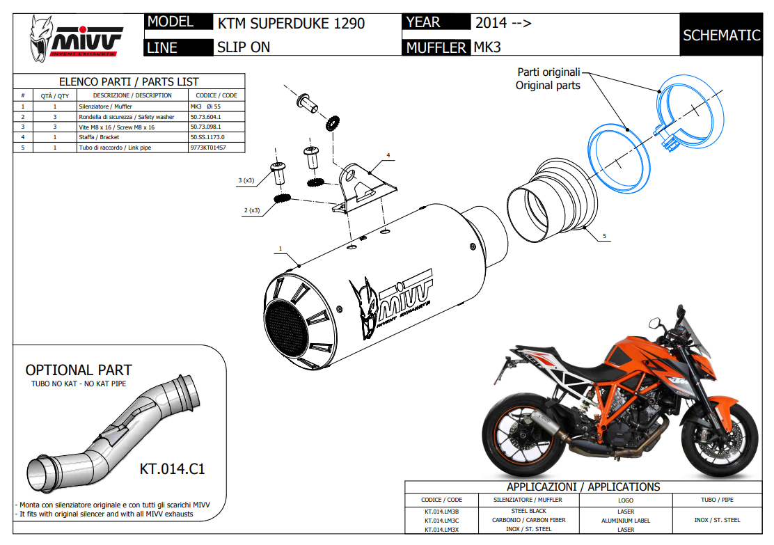 Mivv MK3 Carbon Einddemper met E-keur KTM 1290 Superduke 2014 > 2019