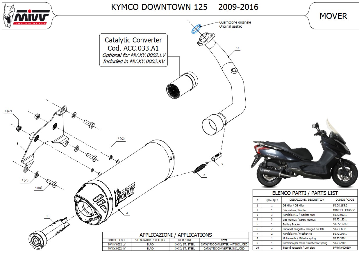 Mivv Mover RVS Black Compleet Uitlaatsysteem met E-keur Kymco Downtown 125 2009 > 2016