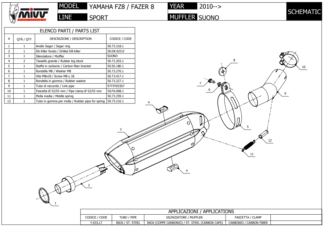 Mivv Suono RVS Black Slip-on Einddemper met E-keur Yamaha FZ8 - Fazer 2010 > 2016