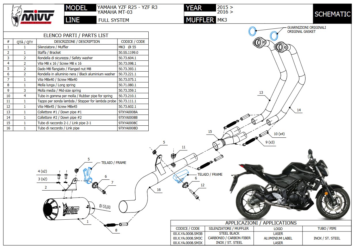 Mivv MK3 Carbon Compleet Uitlaatsysteem zonder E-keur Yamaha MT03 2016 > 2024