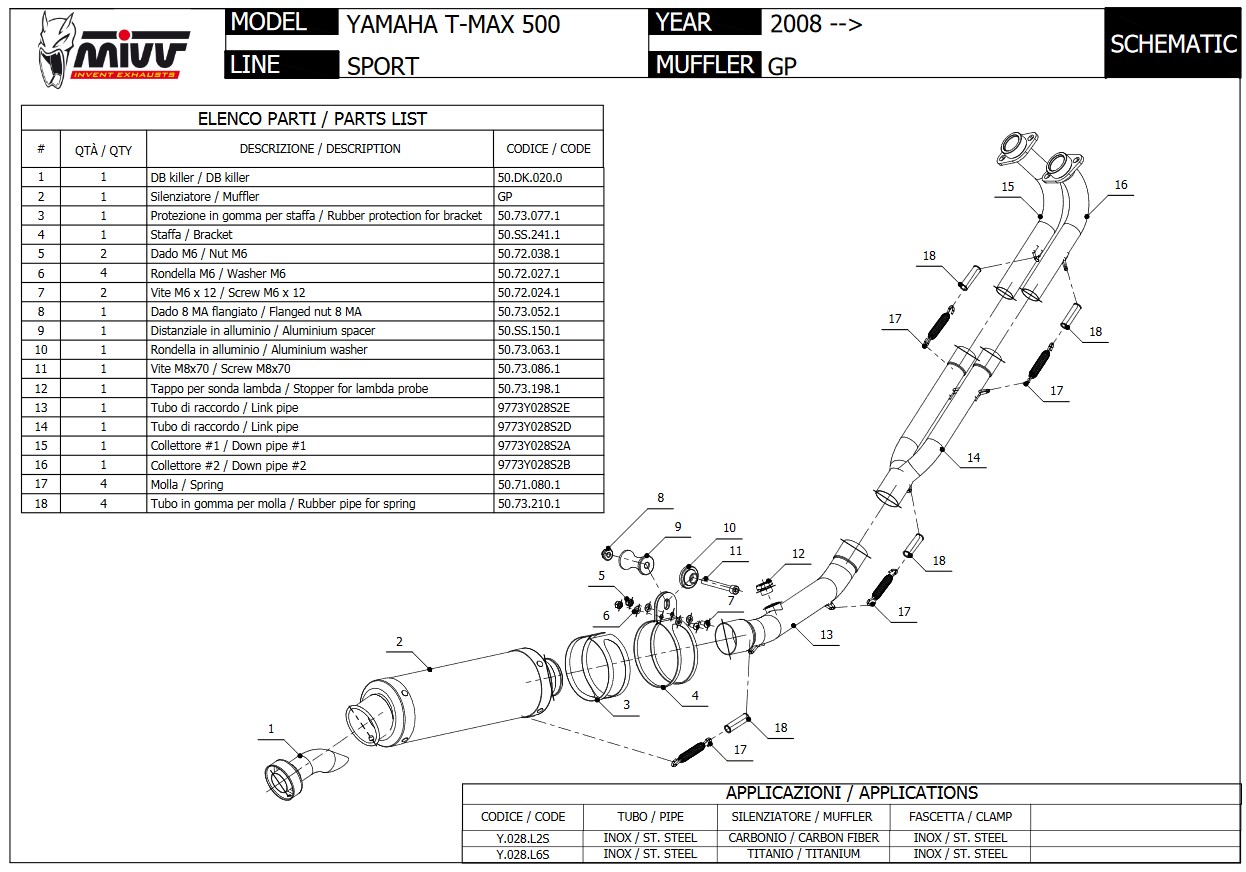 Mivv GP RVS Black Compleet Uitlaatsysteem met E-keur Yamaha T-MAX 500 2008 > 2011