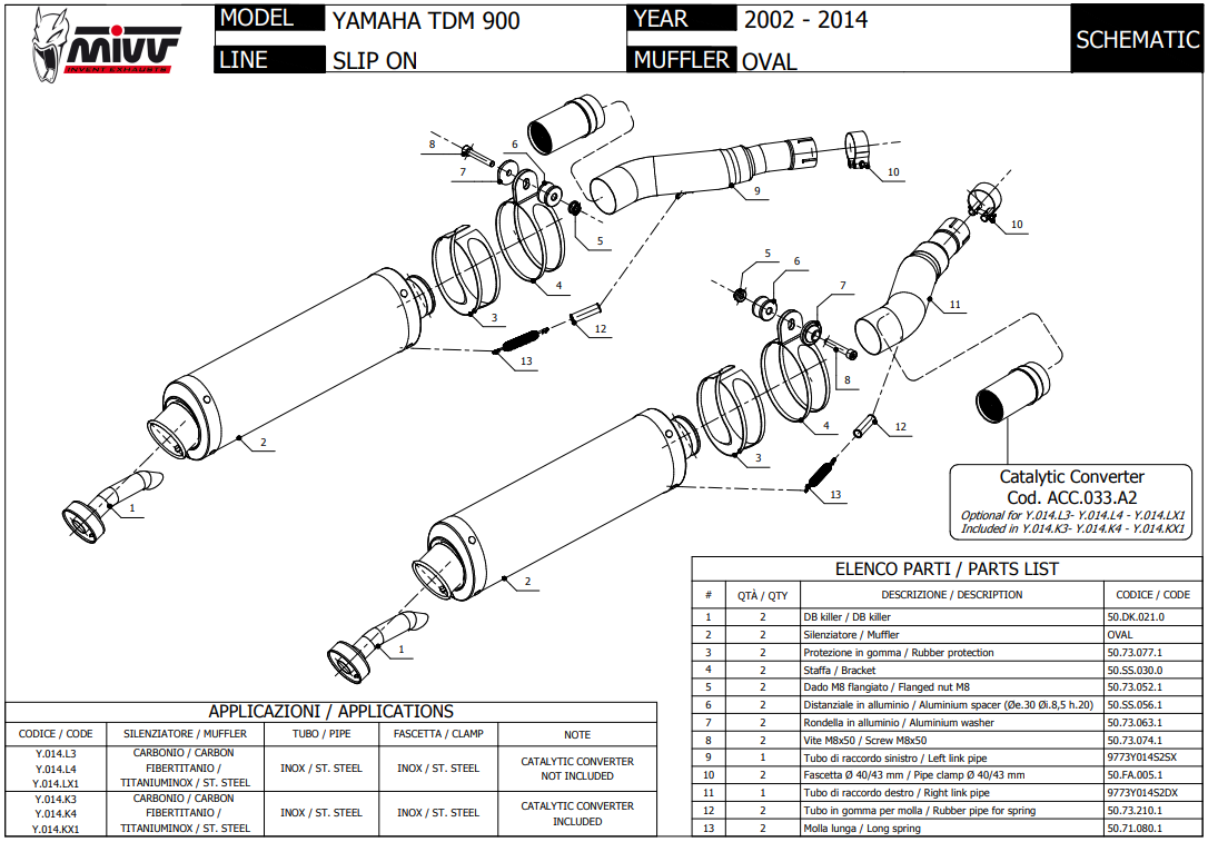 Mivv Oval Carbon Slip-on Dubbele Einddemper Set met E-keur Yamaha TDM 900 2002 > 2014