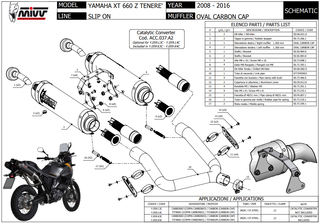 Mivv Oval Titanium met Carbon Endcap Einddemper Set (L+R) met E-keur Yamaha XT660Z 2008 - 2016
