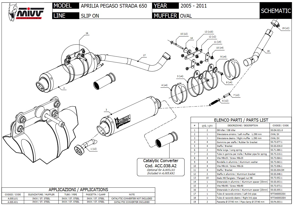 Mivv Oval RVS Dubbele Slip-on Einddemper (R+L) Set met E-keur Aprilia Pegaso Strada 650 2005 > 2011