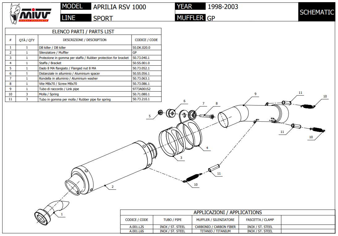 Mivv GP RVS Black Slip-on Einddemper met E-keur Aprilia RSV 1000 1998 > 2003