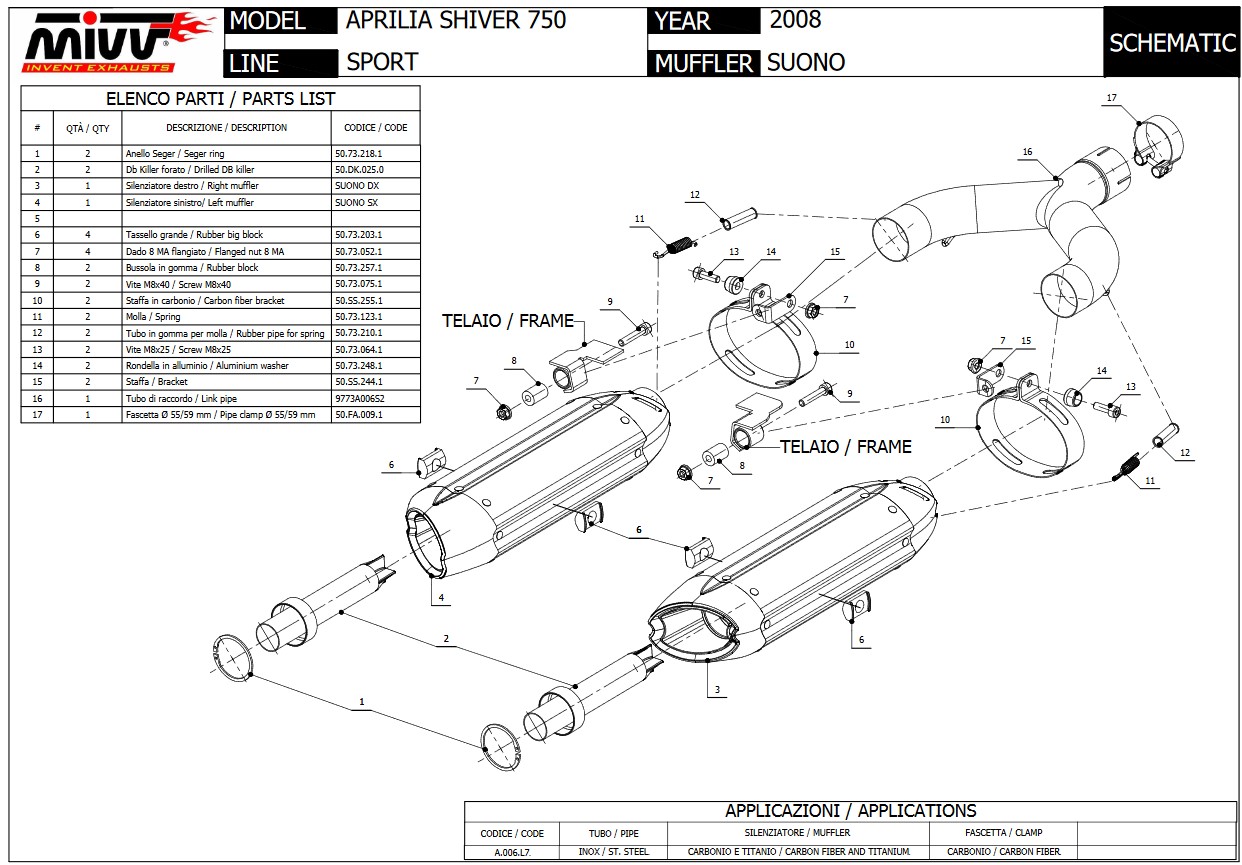 Mivv Suono RVS Black Slip-on dubbele Einddemper (L+R) Set Aprilia Shiver 750 2008 > 2016
