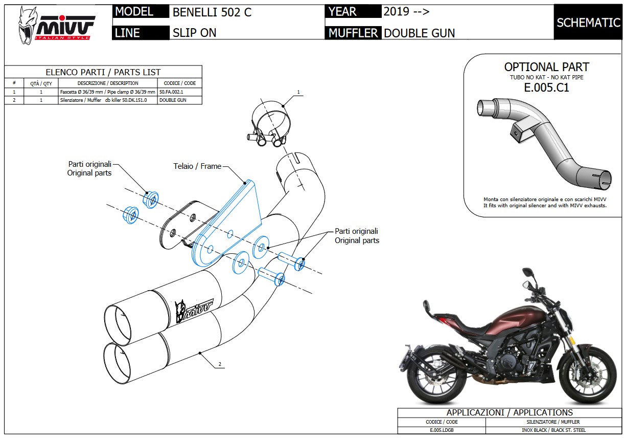Mivv Double Gun Black Slip-on Einddemper met E-keur Benelli 502C 2019 > 2024