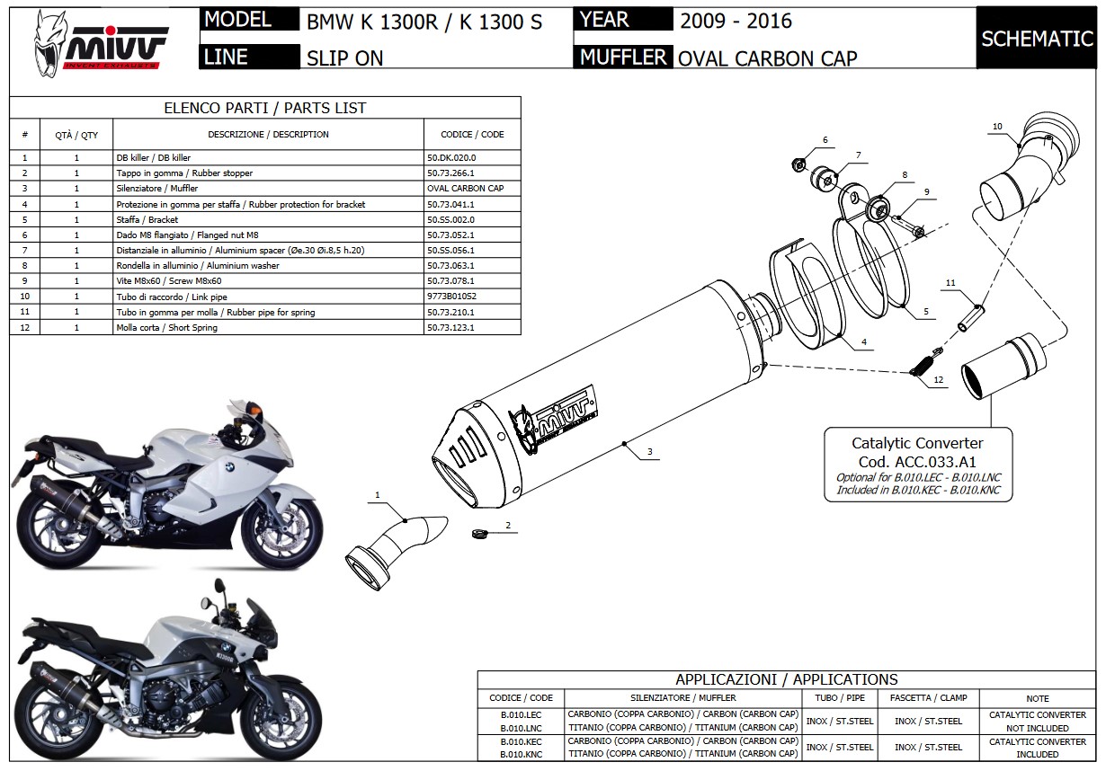 Mivv Oval Titanium met Carbon Cap Slip-on Einddemper met E-keur BMW K 1300 R / S 2009 > 2016