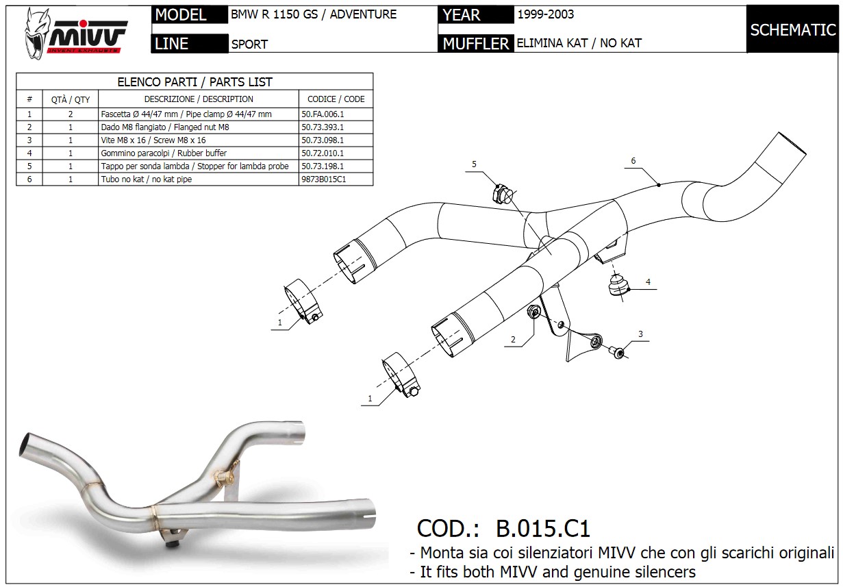 Mivv RVS Decat Collector BMW R1150GS 1999 > 2003
