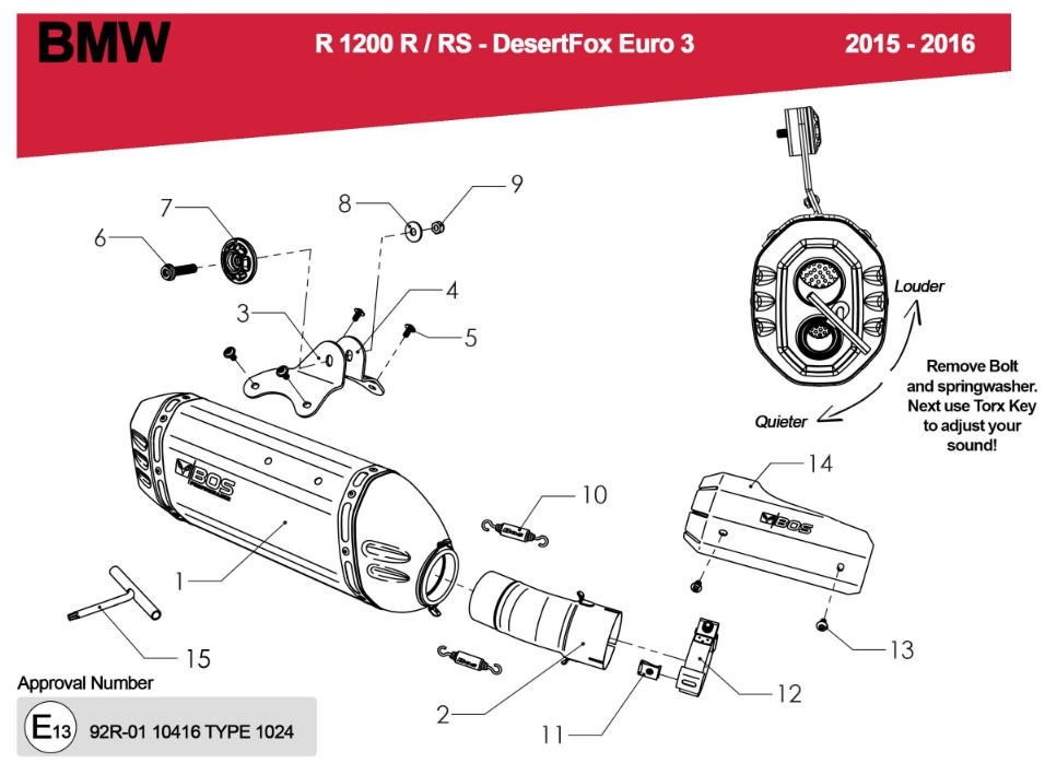 BOS Desert Fox RVS Matt Einddemper met E-keur BMW R 1200 R 2015 > 2016