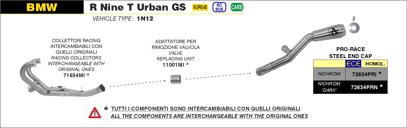 Arrow Pro-Race Nichrom Dark Slip-on Einddemper met E-keur BMW R Nine T Urban GS 2017 - 2020