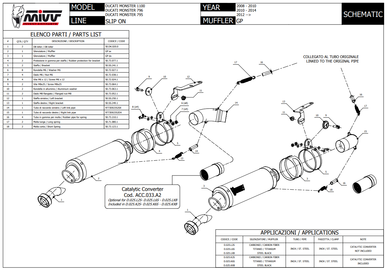 2x Mivv GP RVS Black Slip-on Einddempers met E-keur Ducati Monster 795 2012 > 2014