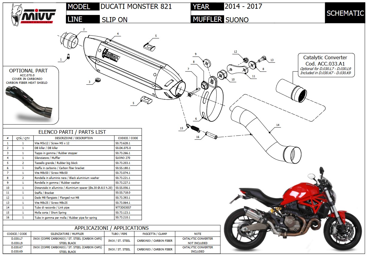 Mivv Suono RVS Slip-on Einddemper met E-keur Ducati Monster 821 2014 > 2017