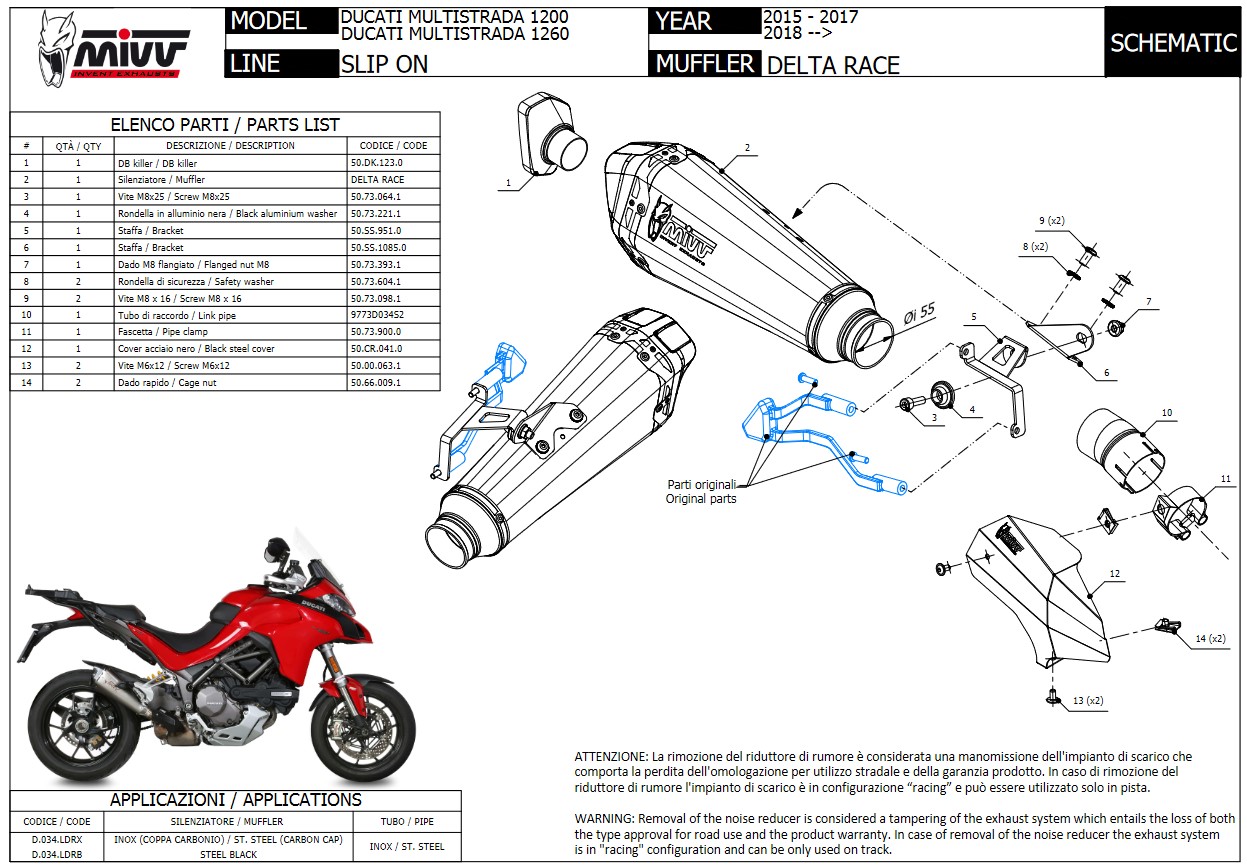 Mivv Delta Race RVS Black Slip-on Einddemper met E-keur Ducati Multistrada 1200 2015 > 2017