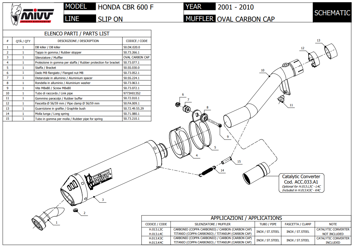 Mivv Oval Carbon met Carbon Cap Slip-on Einddemper met E-keur Honda CBR 600 F 2001 > 2010
