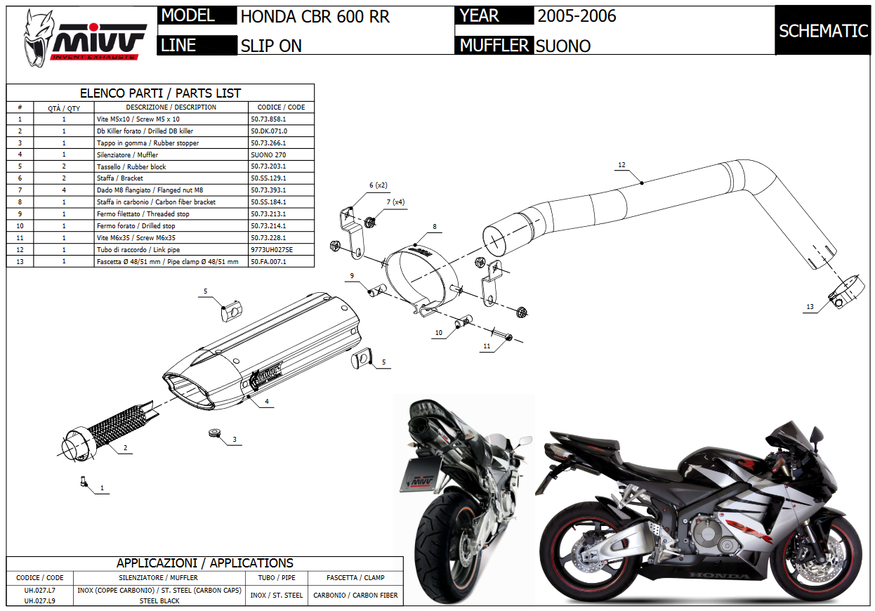 Mivv Suono RVS Black Slip-on Einddemper met E-keur Honda CBR 600 RR 2005 > 2006