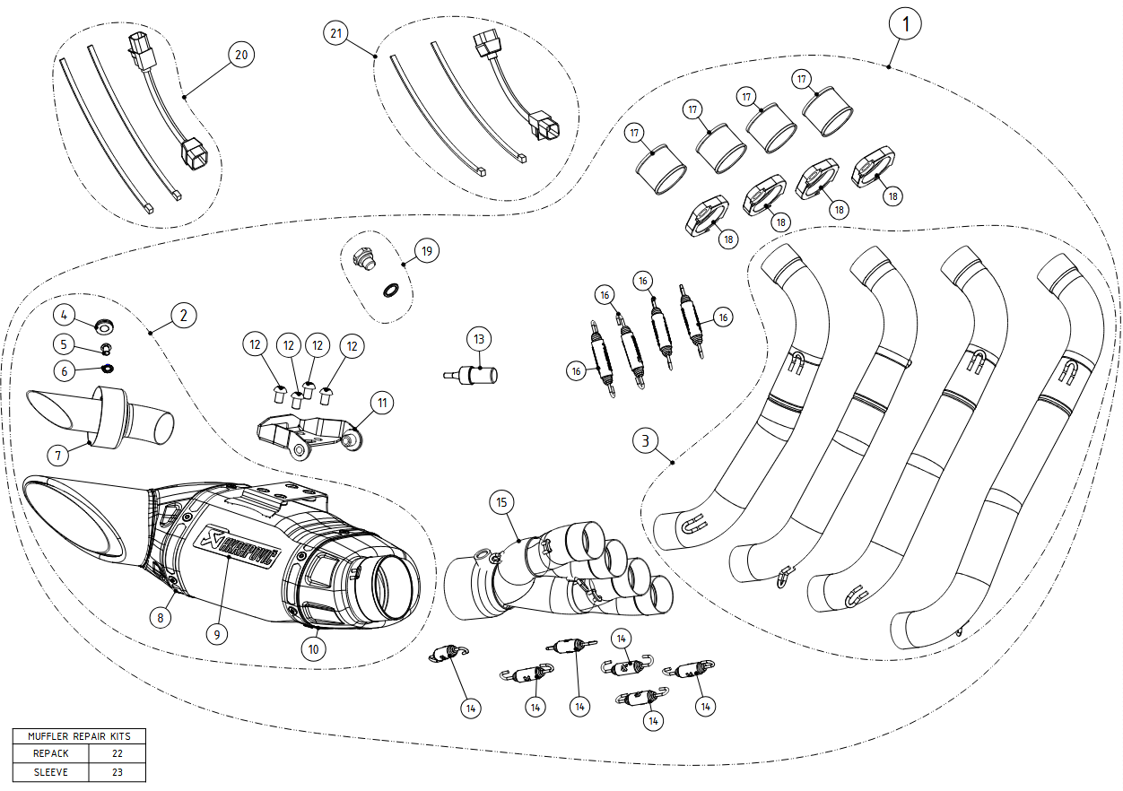 • Combination of racing materials like titanium for the muffler outer sleeve give these exhaust systems a racing touch