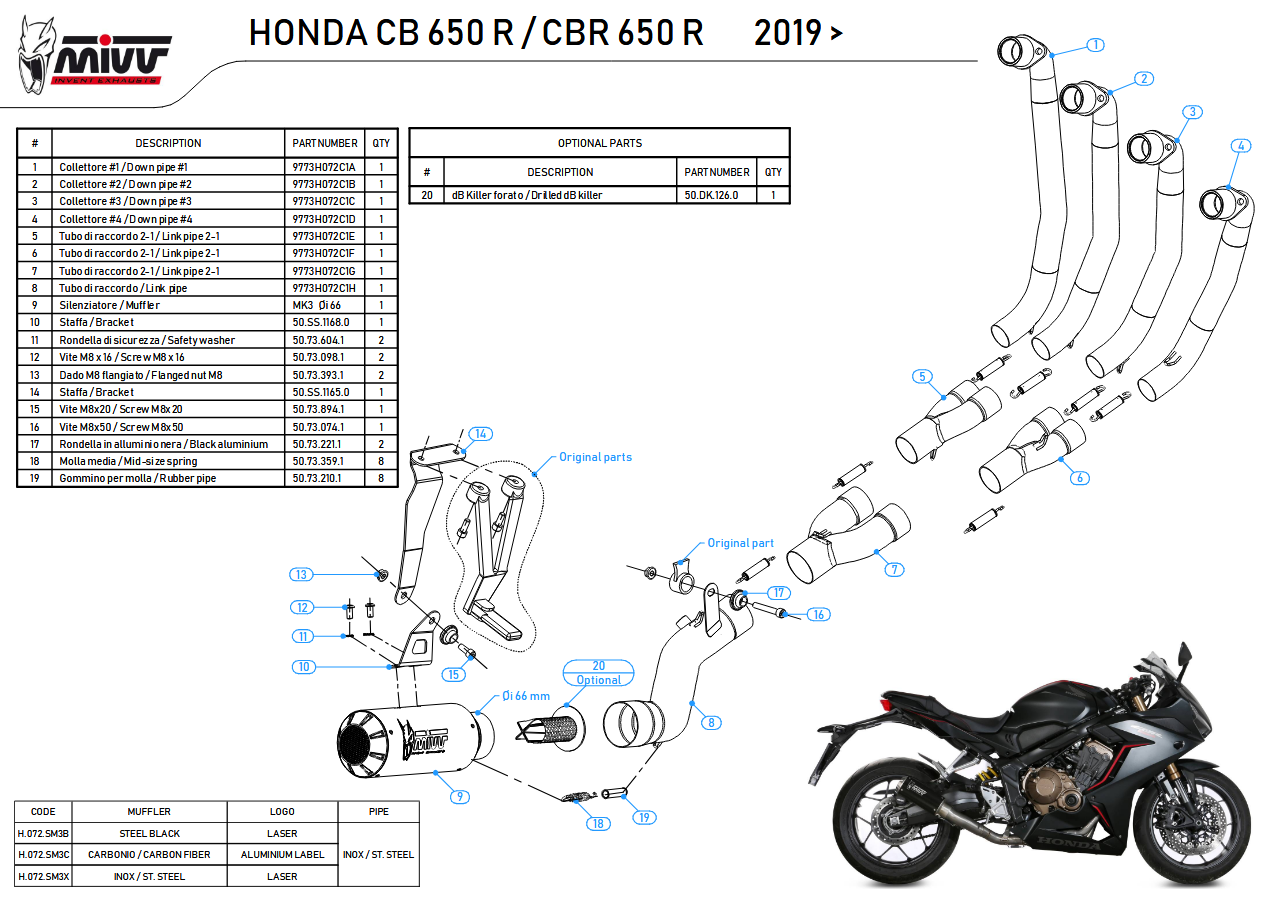 Alternatieve artikelen voor Mivv MK3 Carbon Volledig uitlaatsysteem zonder E-keur Honda CBR 650 R - CB 650 R 2019 - 2023