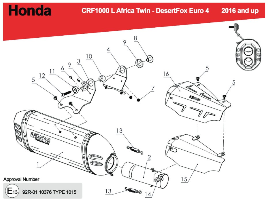 BOS Desert Fox Black Edition Einddemper met E-keur Honda CRF 1000 L Africa Twin (SD04) 2015 - 2017