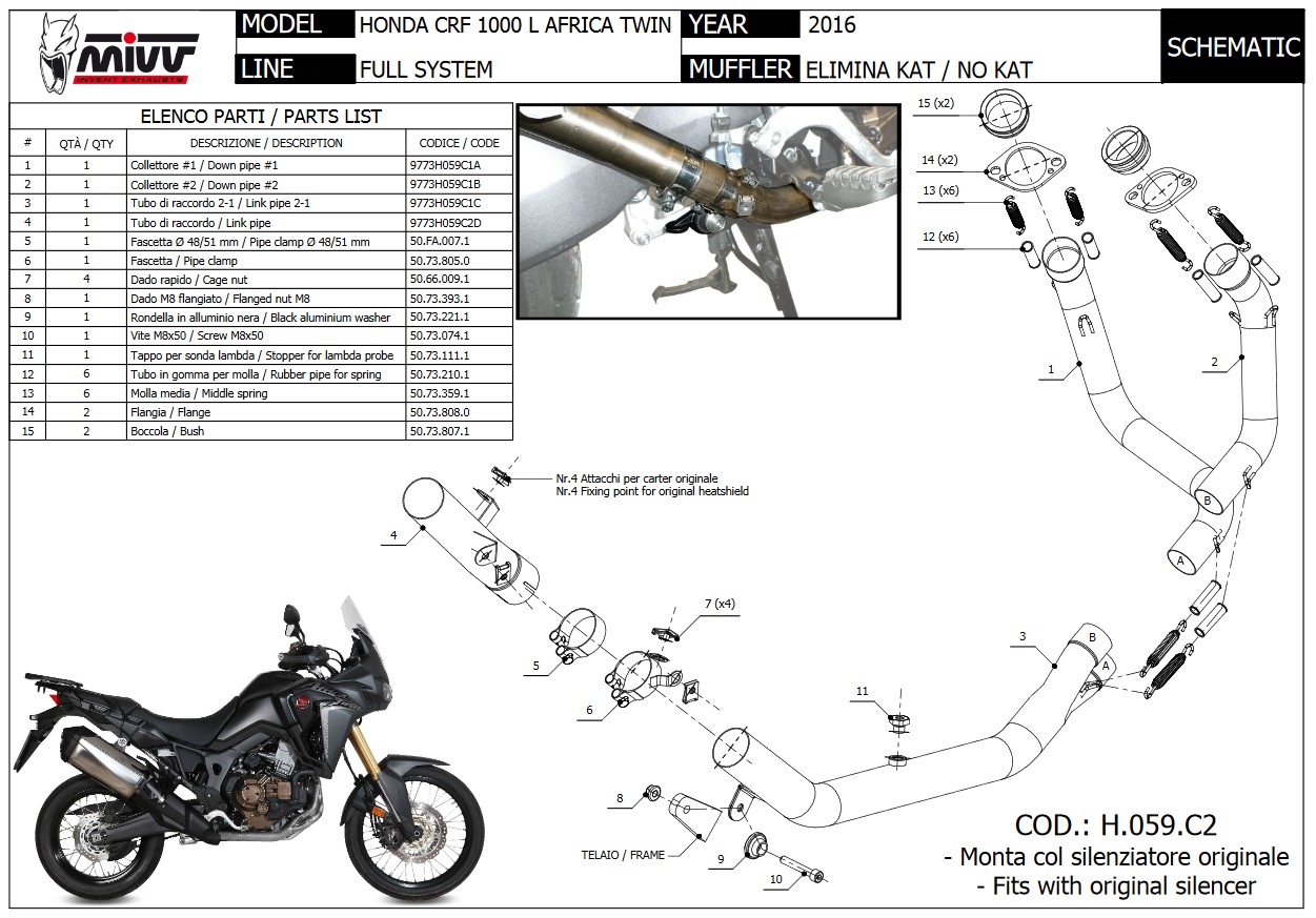 Mivv RVS Decat Voorbochten Honda CRF1000L Africa Twin 2016 > 2019
