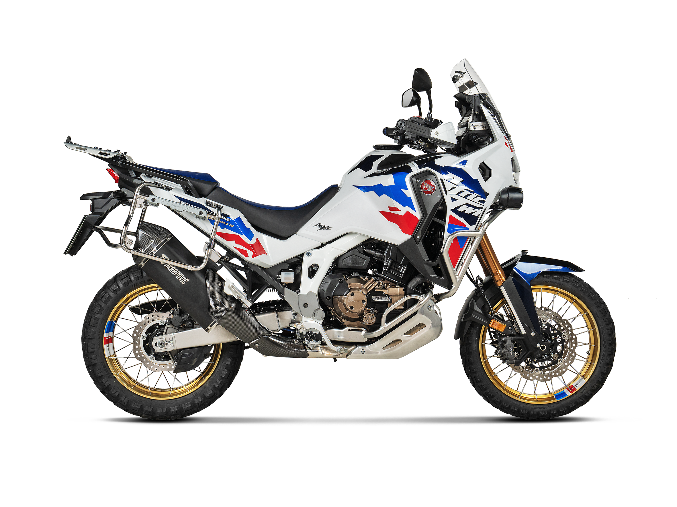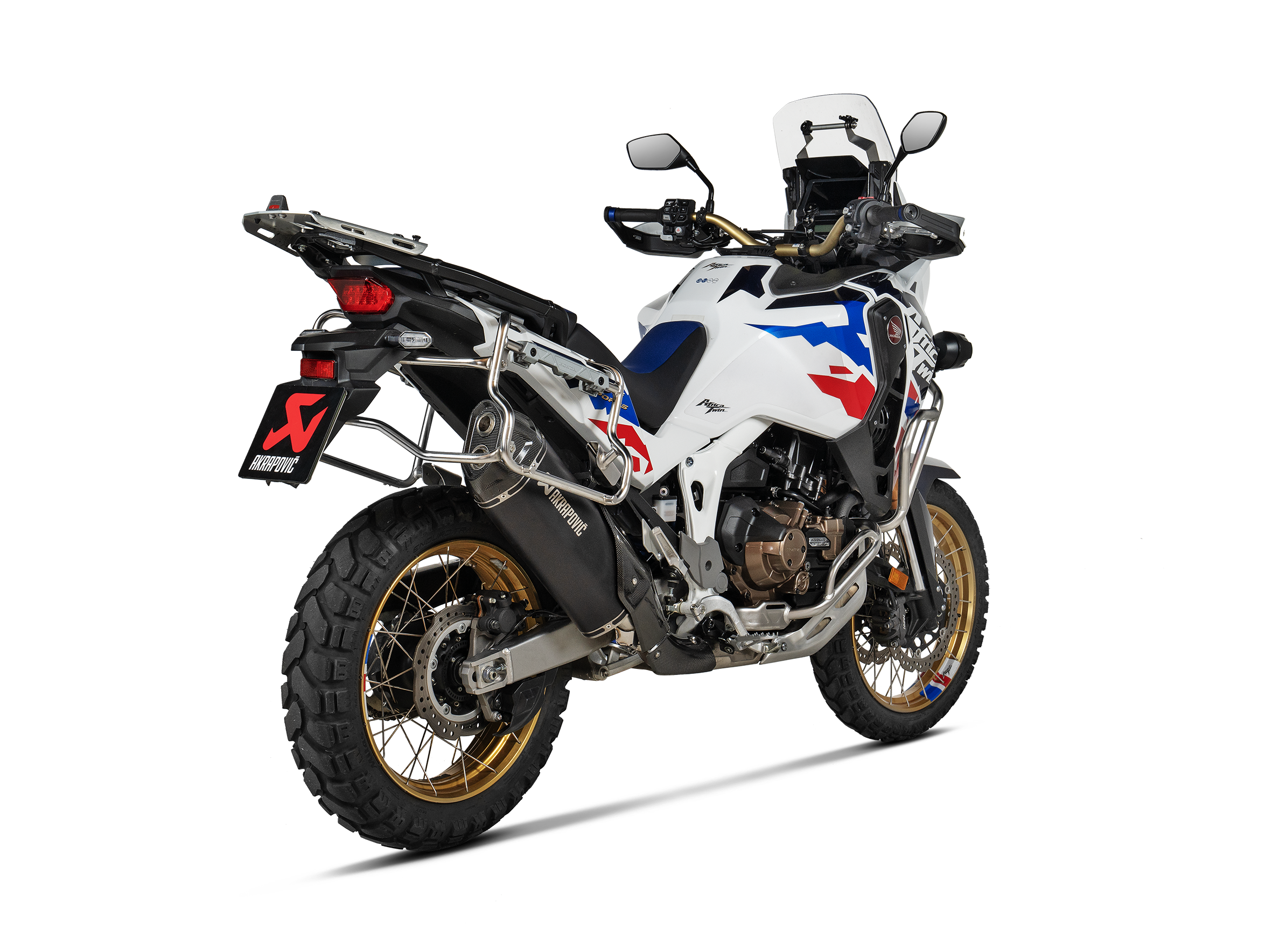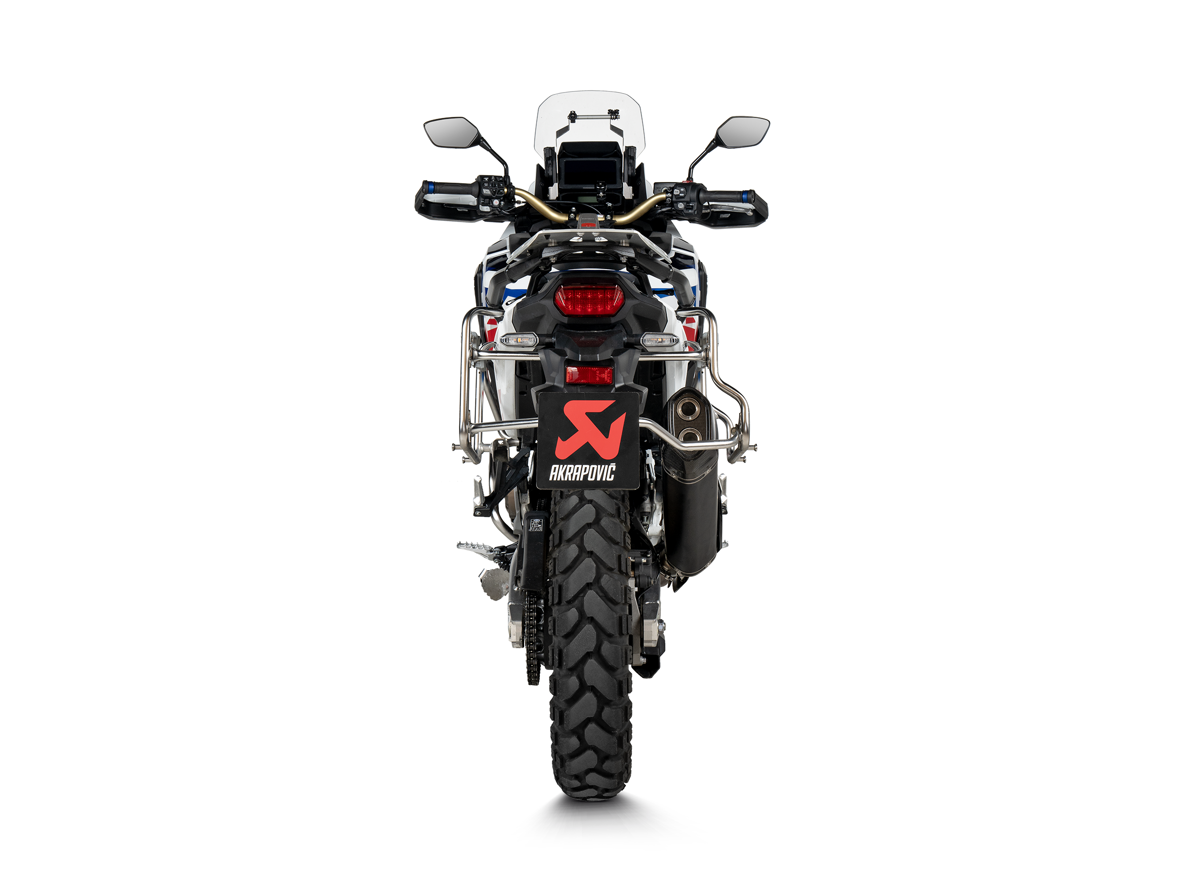 Exhaust system is compatible with Honda side cases and central stand.
