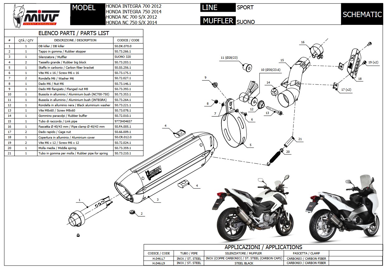 Mivv Suono RVS Slip-on Einddemper met E-keur Honda Integra 700 2012 > 2013
