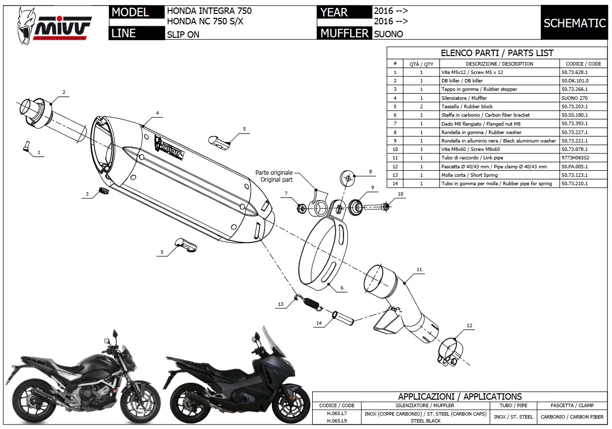 Mivv Suono RVS Black Slip-on Einddemper met E-keur Honda Integra 750 2016 > 2020