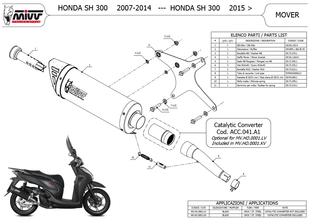 Mivv Mover RVS Black Slip-on Einddemper met E-keur Honda SH 300 2007 > 2020