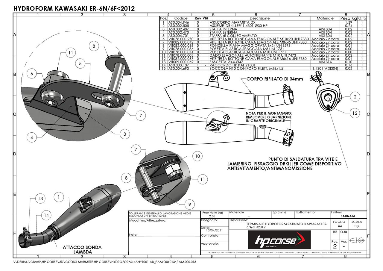 HP Corse Hydroform RVS Slip-on Einddemper met E-keur Kawasaki ER - 6 N / F 2005 - 2011