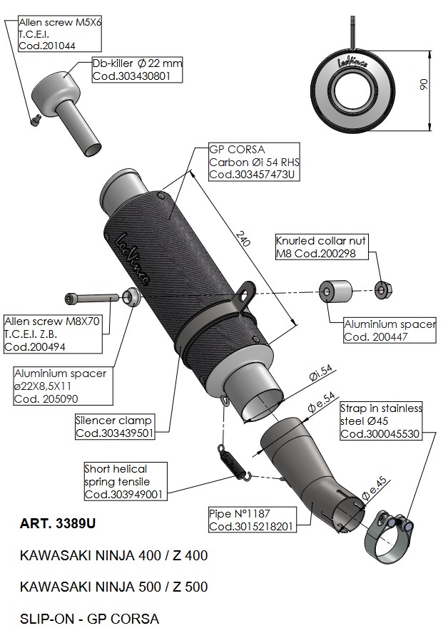 Deze uitlaat is een ware blikvanger: een volledig carbon demper met glanzende afwerking, AISI 304 RVS bevestigingsstrap en een schuine slash cut eindkap. Hij weegt slechts 1,41 kg en is geschikt voor legaal straatgebruik dankzij de E-keur.