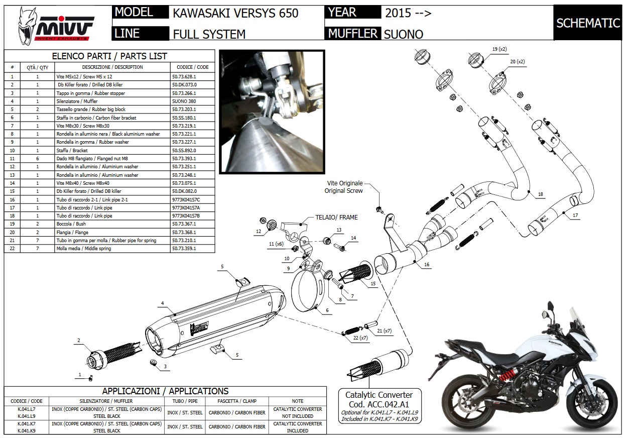 Mivv Suono RVS Black Compleet 2in1 Uitlaatsysteem met E-keur Kawasaki Versys 650 2015 > 2020