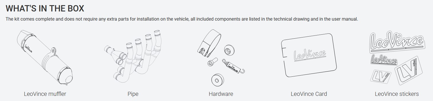 Deze uitlaat is opgebouwd uit AISI 304 roestvrij staal met een volledig carbon eindkap en montagestrap. Met een gewicht van 4,99 kg en een matte afwerking met laser LeoVince-logo is dit een hoogwaardige en straatlegale upgrade inclusief link pipe en E-keur certificaat.