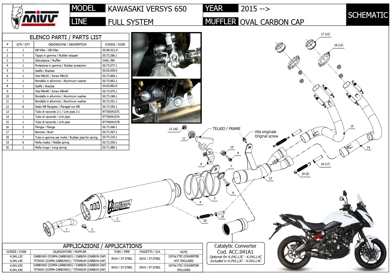 Mivv Oval Carbon Compleet 2in1 Uitlaatsysteem met E-keur Kawasaki Versys 650 2015 > 2020