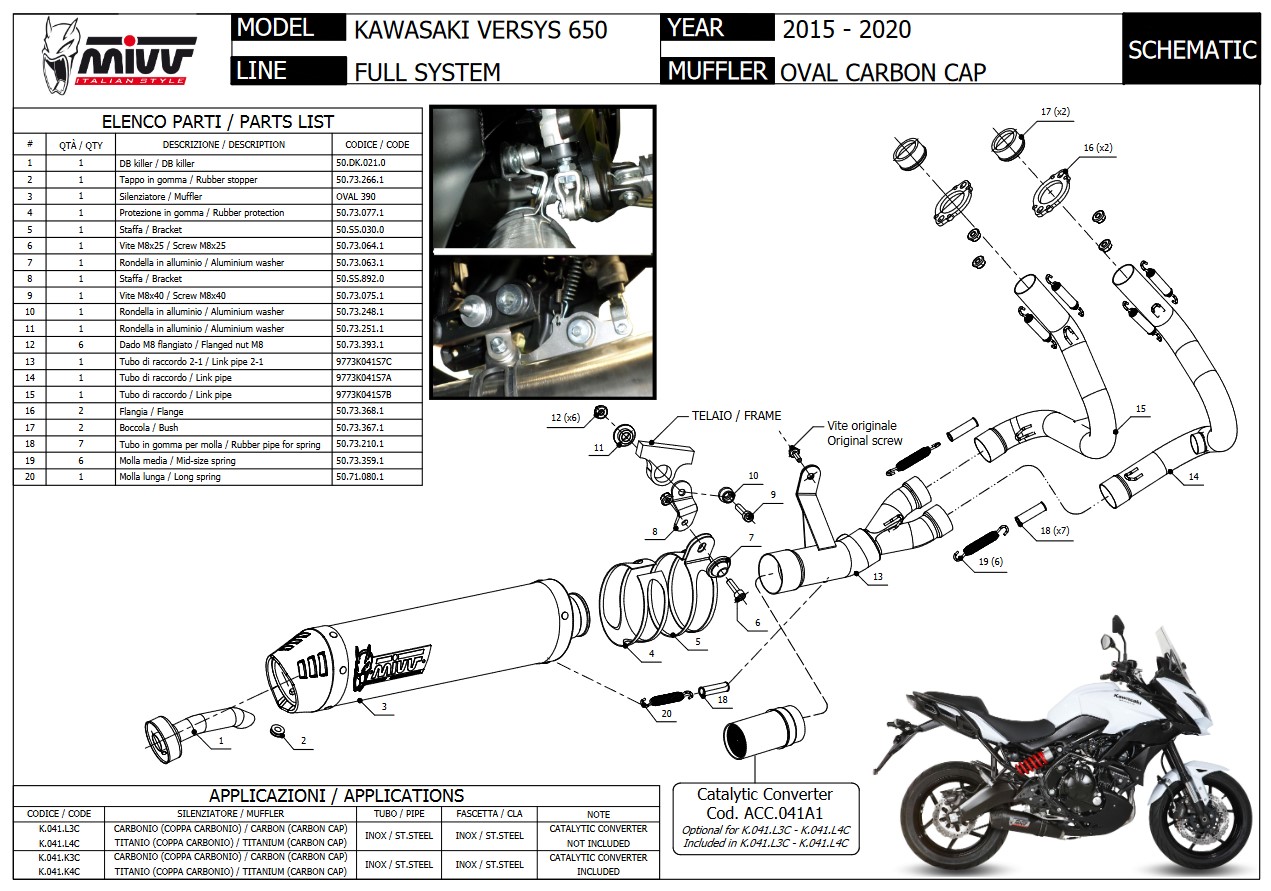 Mivv Oval Titanium Volledig Uitlaatsysteem met E-keur Kawasaki Versys 650 2015 > 2020