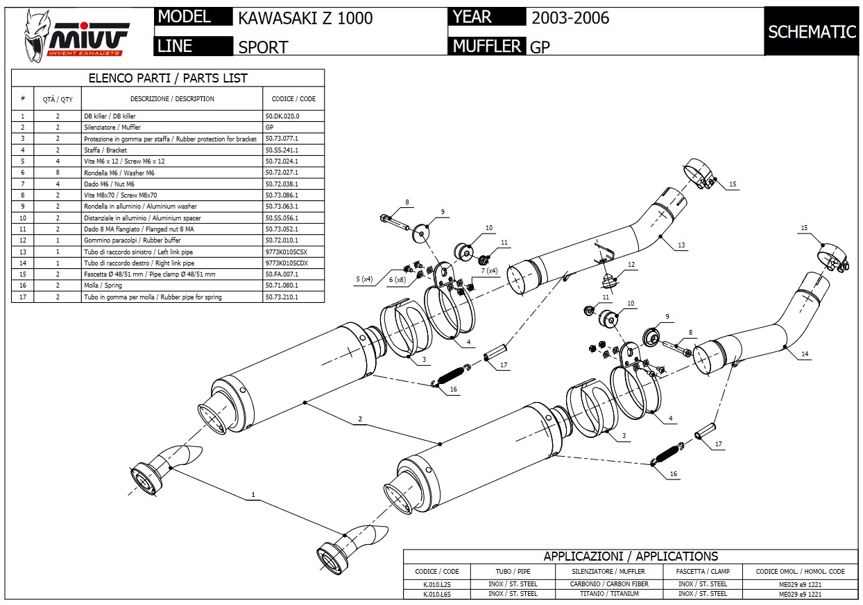 Mivv GP Carbon Slip-on Dubbele Einddemper (L+R) Kawasaki Z 1000 2003 > 2006