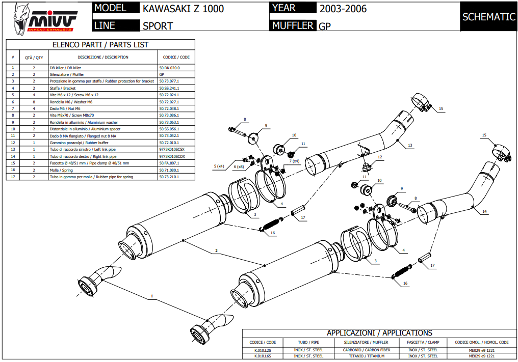 2x Mivv GP RVS Black Slip-on Einddempers (L+R) met E-keur Kawasaki Z 1000 2003 > 2006