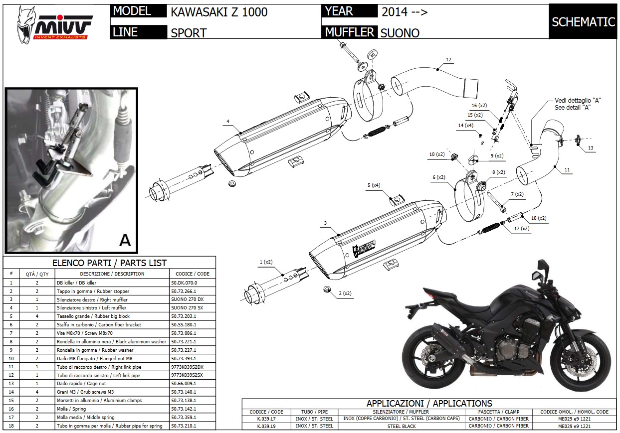 Mivv Suono RVS Black Slip-on Dubbele Einddemper (L+R) met E-keur Kawasaki Z 1000 2014 > 2020