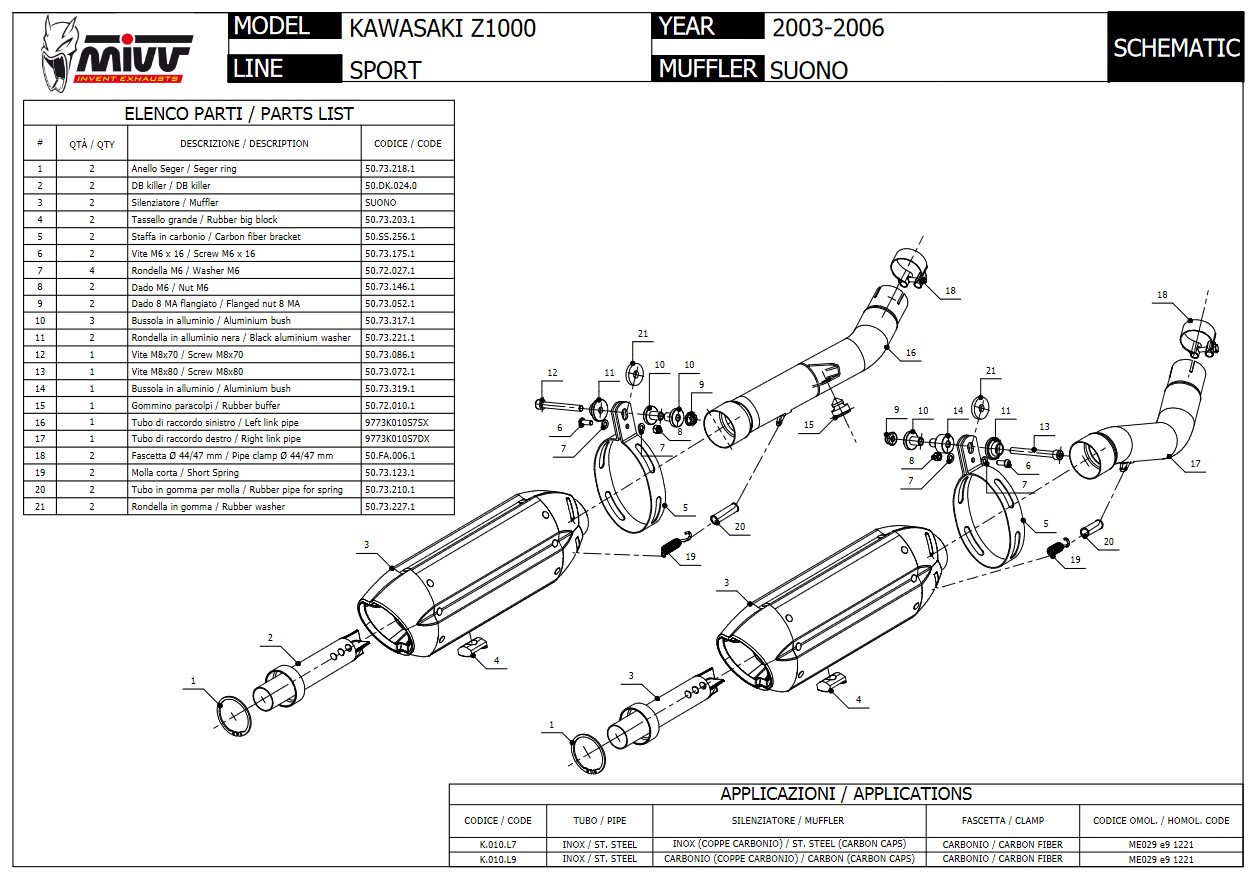 Mivv Suono RVS Black Dubbele Slip-on Einddemper (R+L) met E-keur Kawasaki Z 1000 2003 > 2006