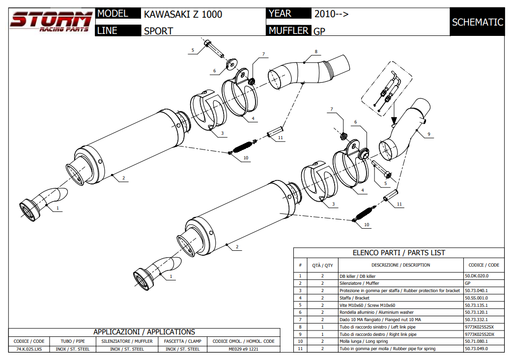 Storm By Mivv Dubbele GP RVS Slip-On Einddemper Met E-keur KAWASAKI Z1000 2010 - 2013