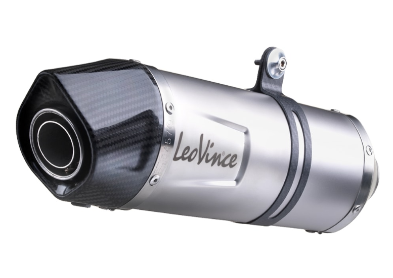 Deze uitlaat is opgebouwd uit AISI 304 roestvrij staal met een volledig carbon eindkap en montagestrap. Met een gewicht van slechts 2,60 kg en een matte afwerking met laser LeoVince-logo is dit een hoogwaardige en straatlegale upgrade inclusief link pipe en E-keur certificaat.