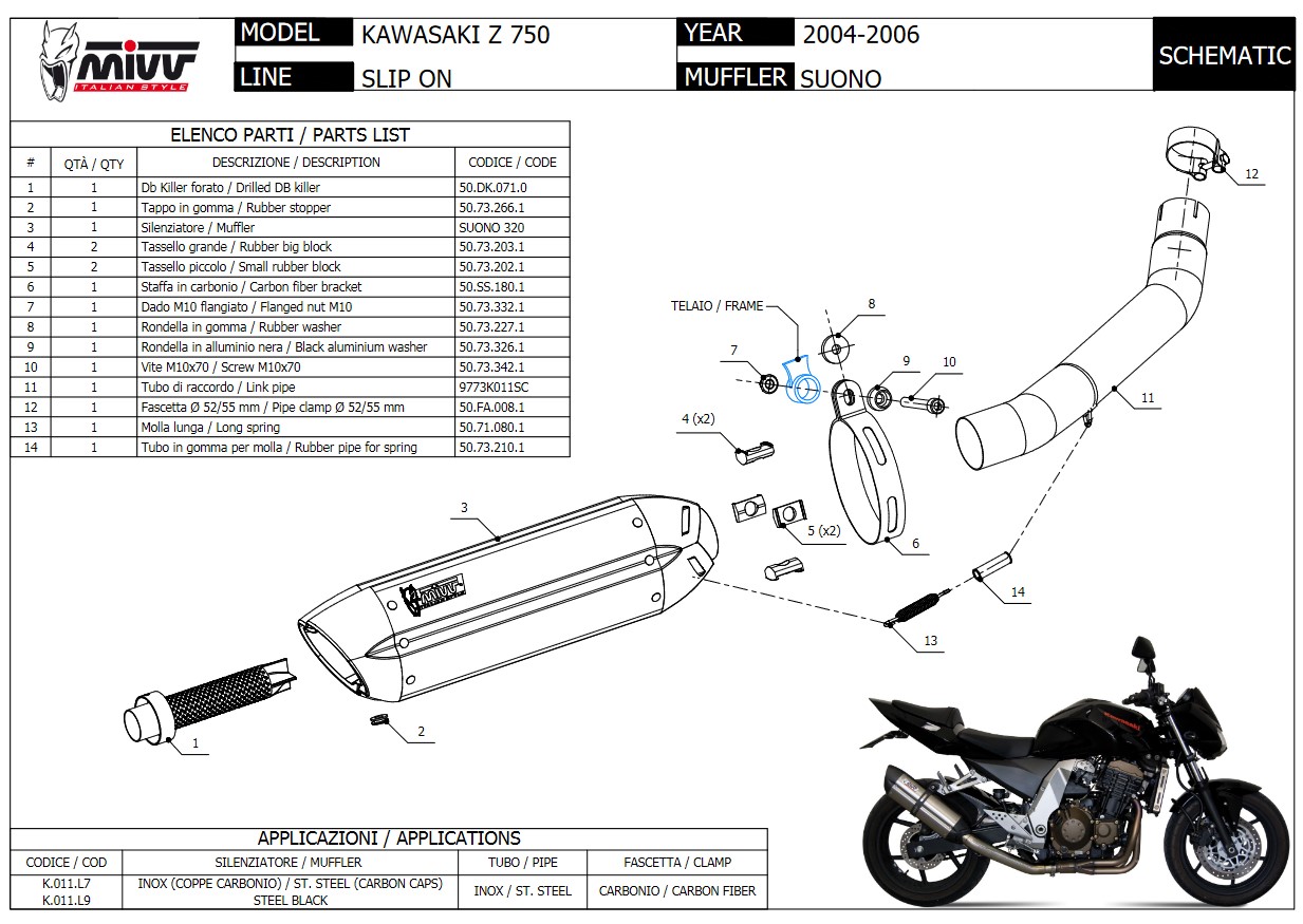 Mivv Suono RVS Black Slip-on Einddemper met E-keur Kawasaki Z 750 2004 > 2006