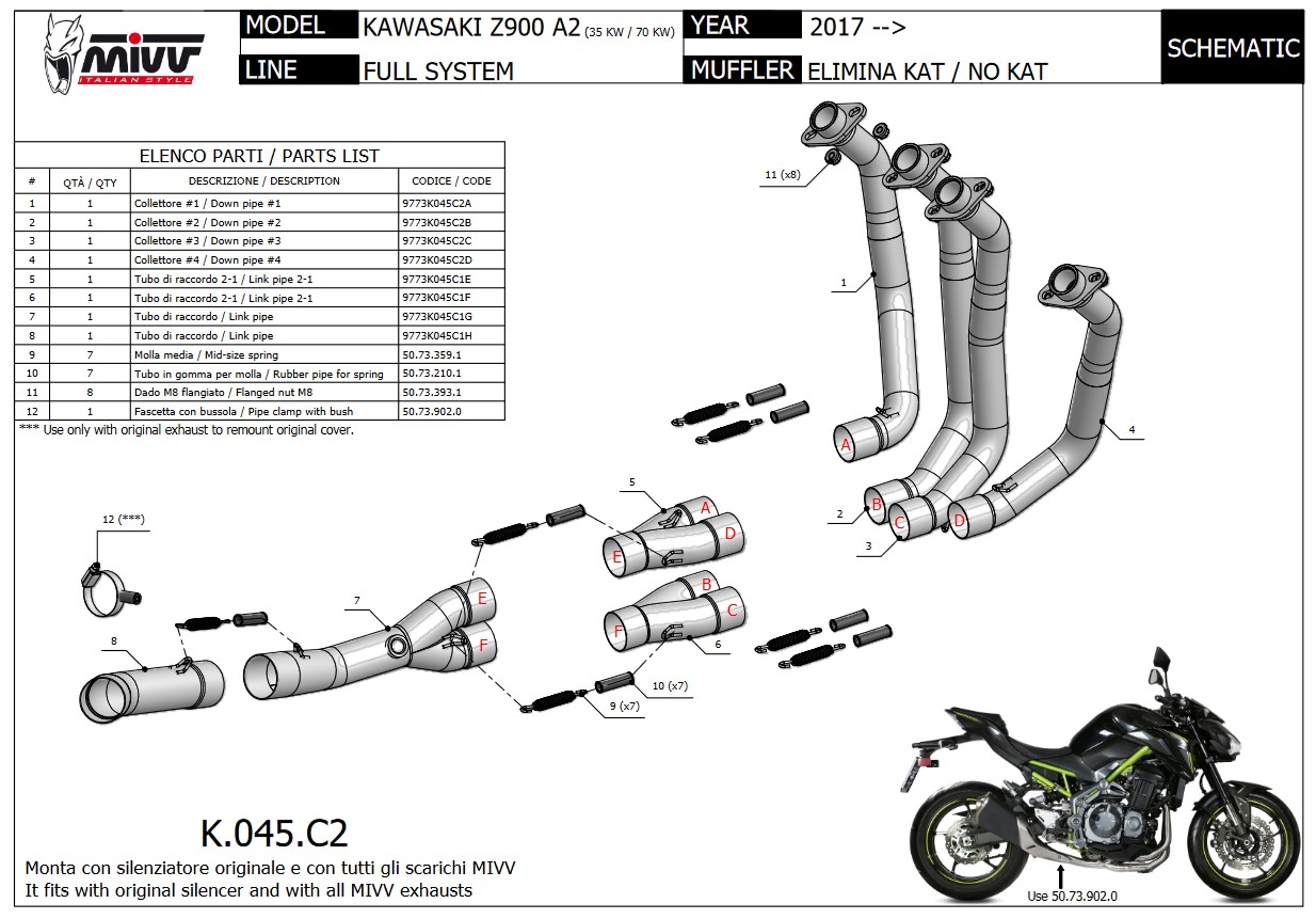 Mivv RVS Decat Voorbochten Kawasaki Z900 A2 (35 KW / 70 KW) 2017 > 2024