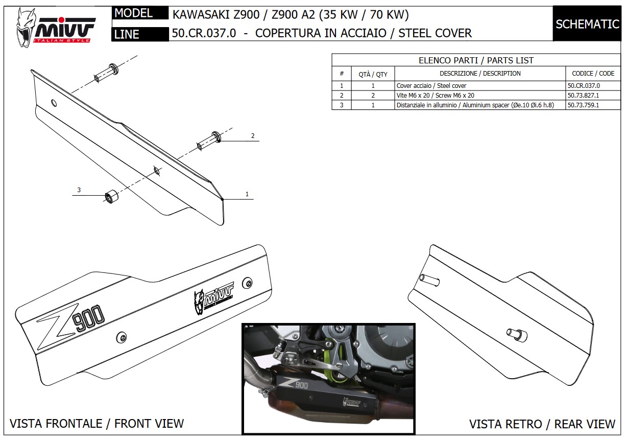 Belangrijk: Dit optionele Mivv heatshield past alleen op de originele Kawasaki OEM voorbochten en niet in combinatie met andere aftermarket voorbochten. Ook niet in combinatie met de Decat voorbochten van Mivv!