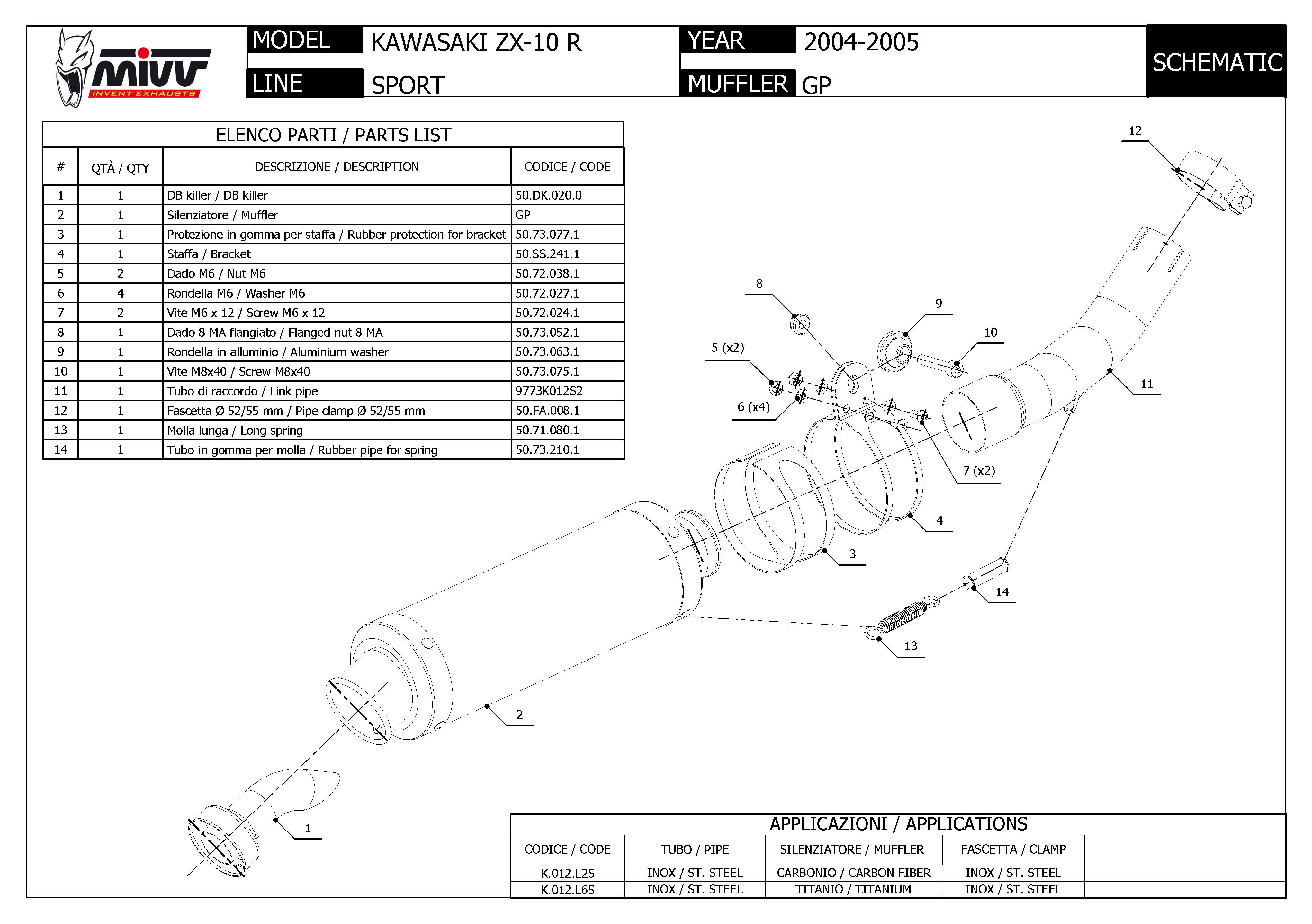 Mivv GP Carbon Slip-on Einddemper met E-keur Kawasaki ZX-10 R / RR / SE 2004 > 2005