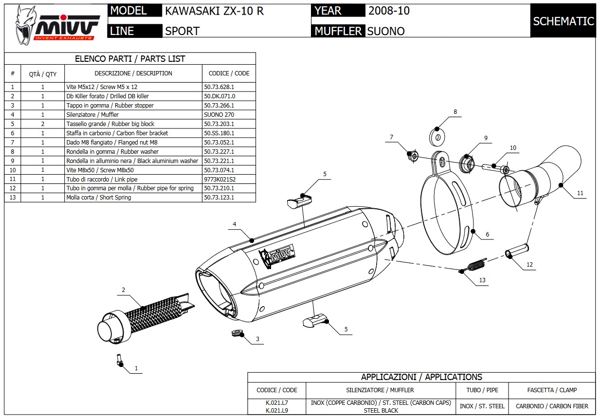 Mivv Suono RVS Black Slip-on Einddemper met E-keur Kawasaki ZX-10 R 2008 > 2010