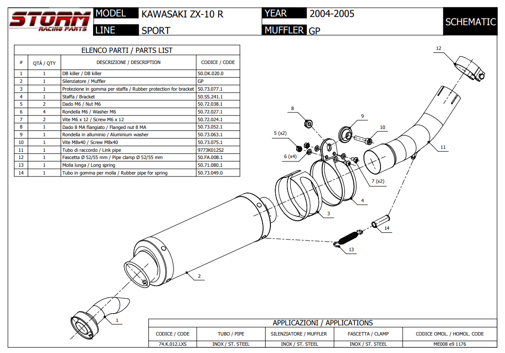 Storm By Mivv GP RVS Black Slip-On Einddemper Met E-keur KAWASAKI ZX-10 R 2004 - 2005